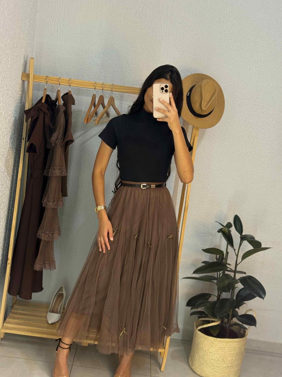 Saia Catarina- Preta, Off, Cinza, Rosa, Marrom