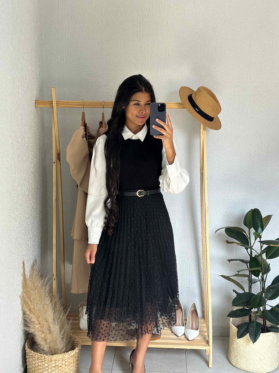 Saia Tule 2 Camadas-Preta