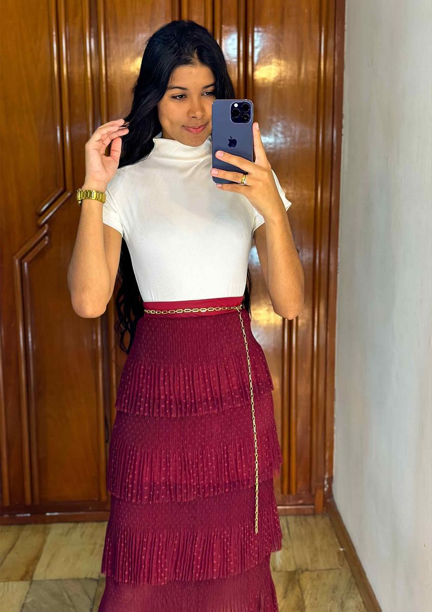 Saia 4 Marias Tule-Branca, Verde, Vinho