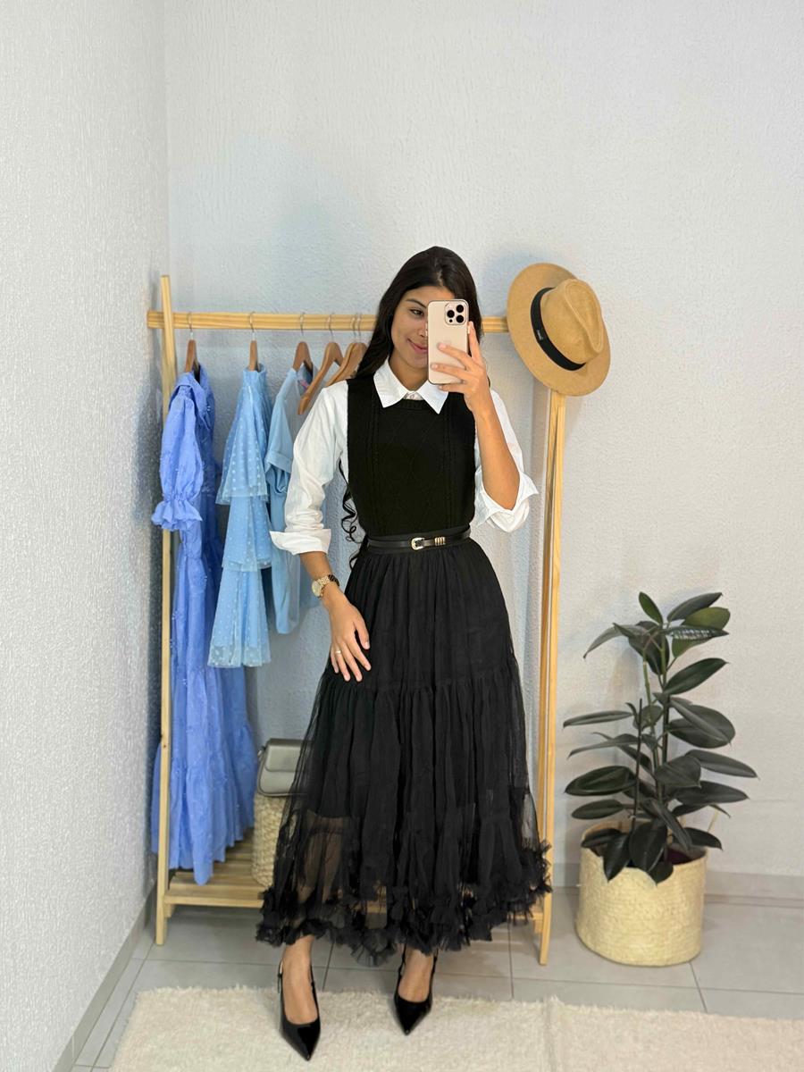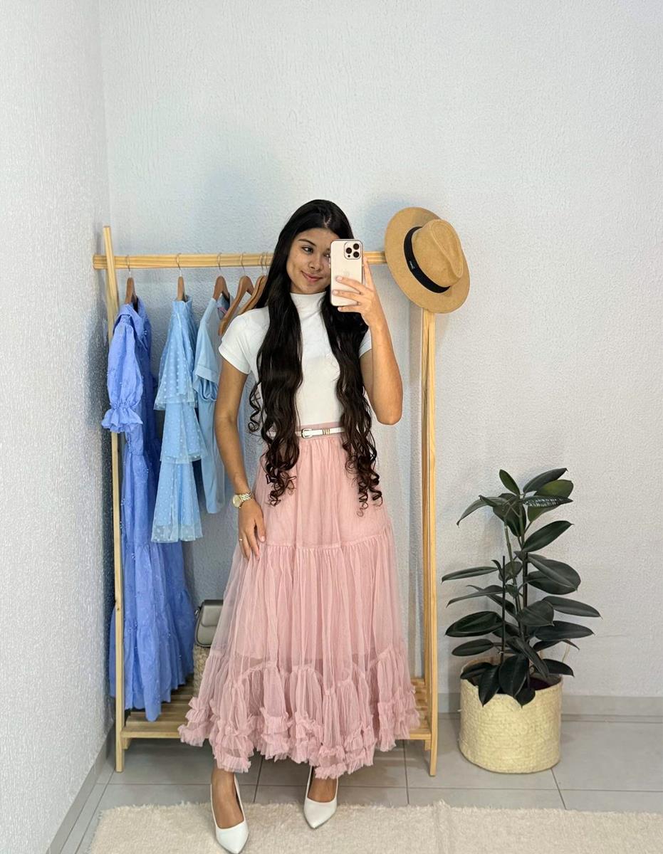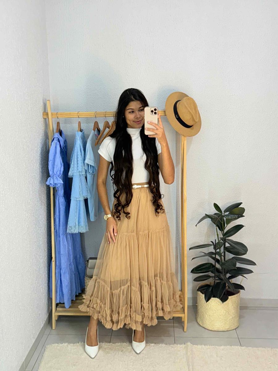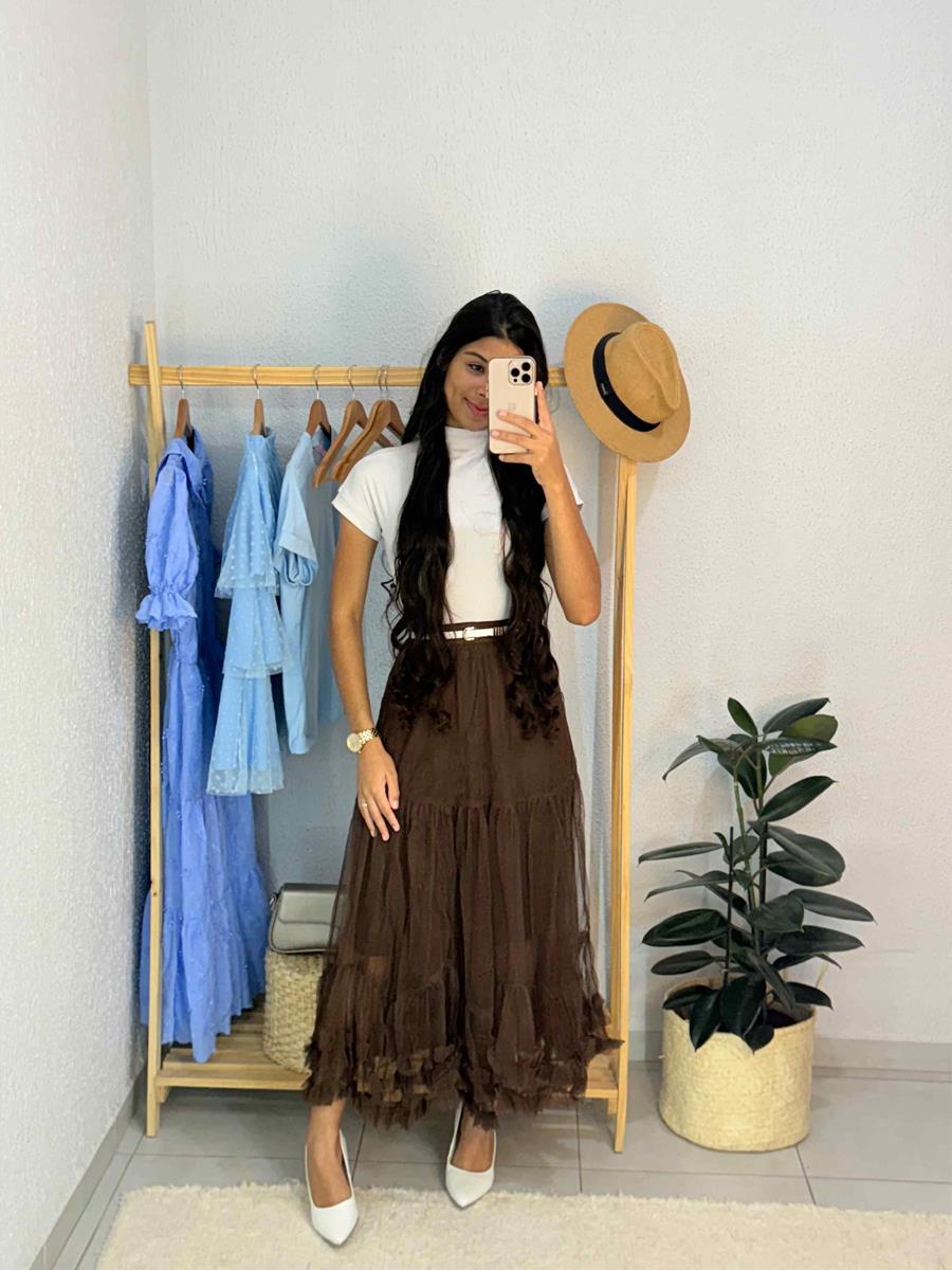 Saia Jade- Off, Preta, Bege, Marrom, Rosa